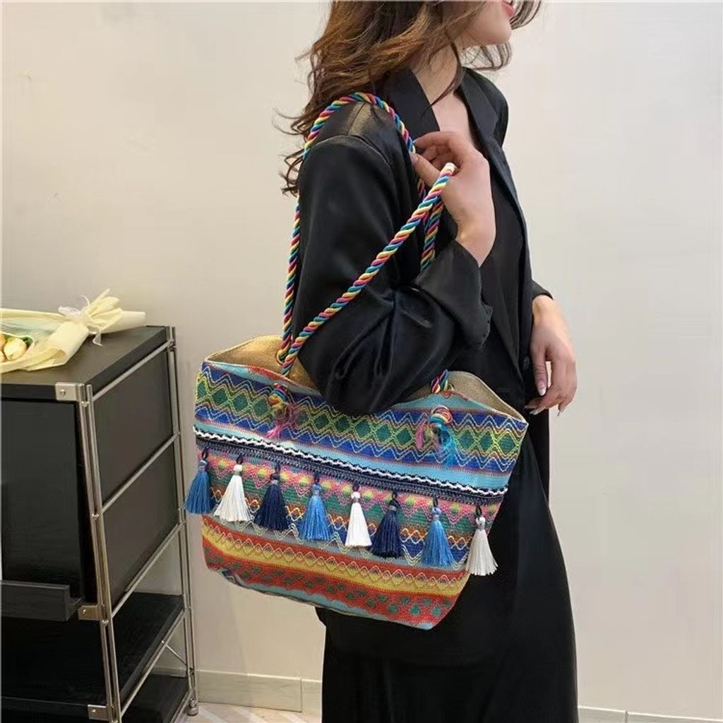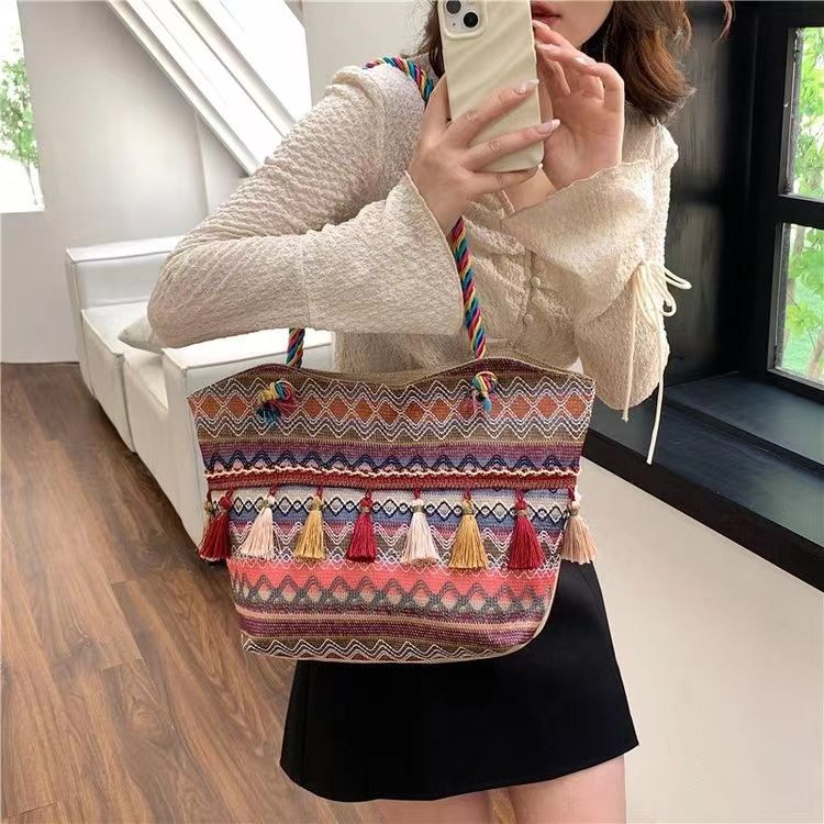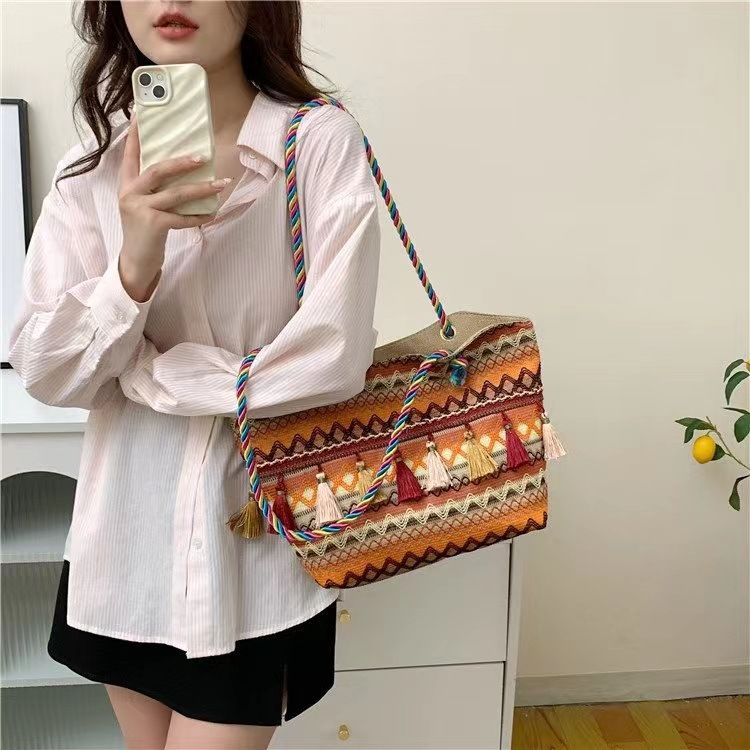 Ethnic style Su large capacity shoulder bag 2025 new fashionable woven tote bag temperament versatile women's bag